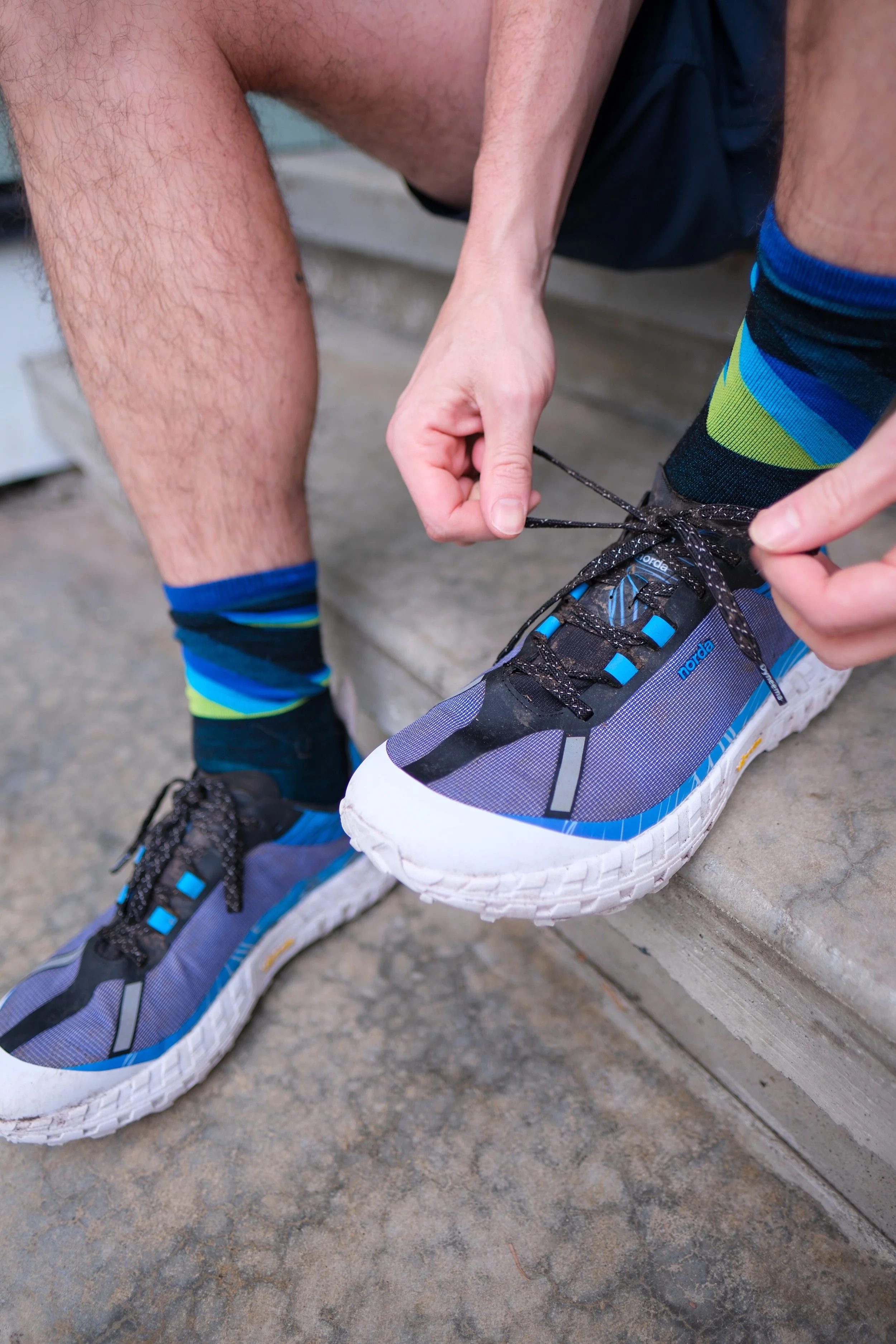 One important note: size up from your regular shoe size. The Norda 001 runs a bit small, so check the size chart before purchasing. We recommend pairing them with no-cushion or ultra-light cushion socks for the best fit. Matt loves wearing his with the Darn Tough Micro Crew Ultra-Lightweight Running Socks (check out our full review of Darn Tough socks here).