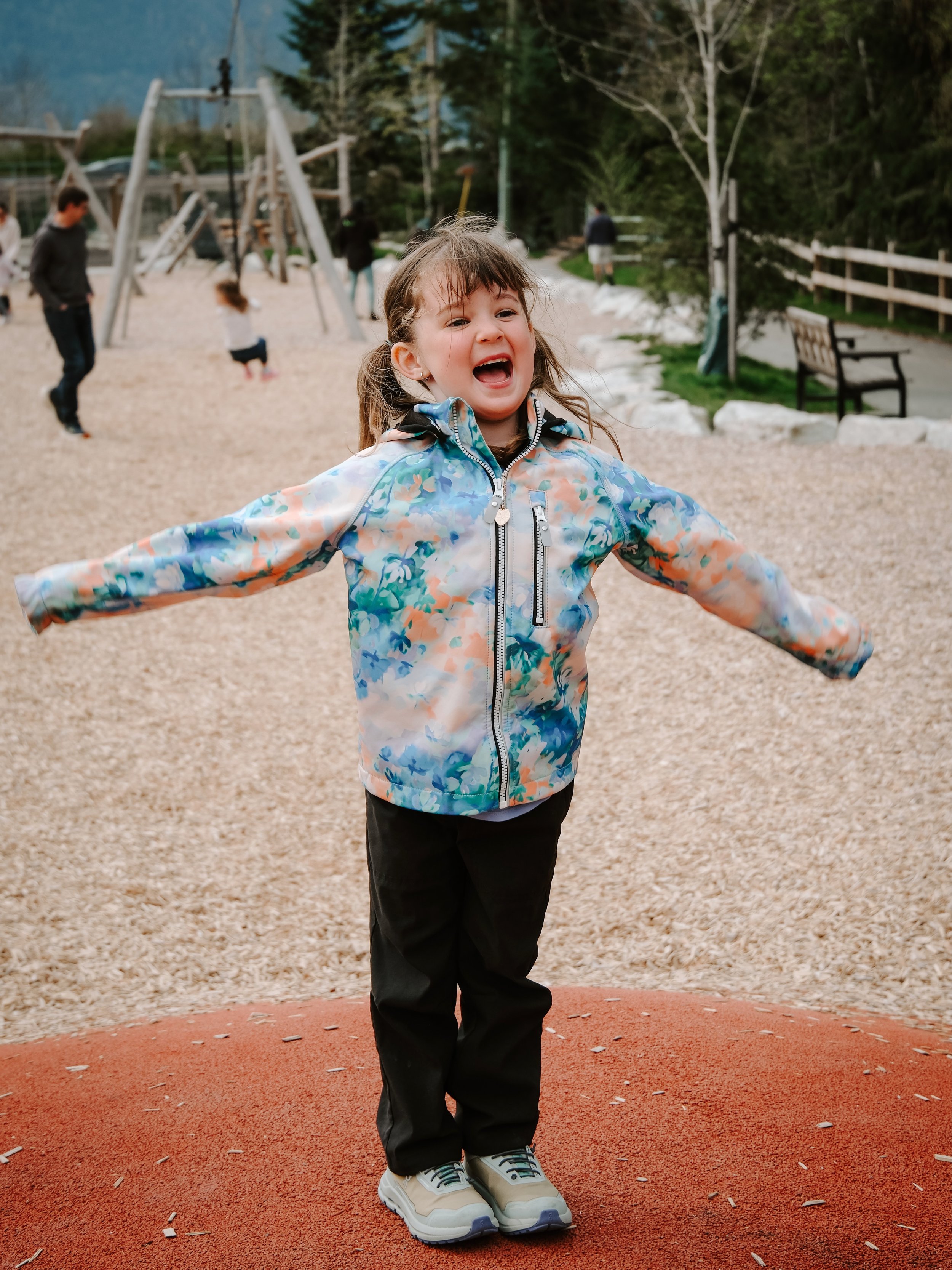 Sp’akw’us Feather Park is easily one of the best playgrounds in Squamish. Right along the water, and surrounded by mountain views.