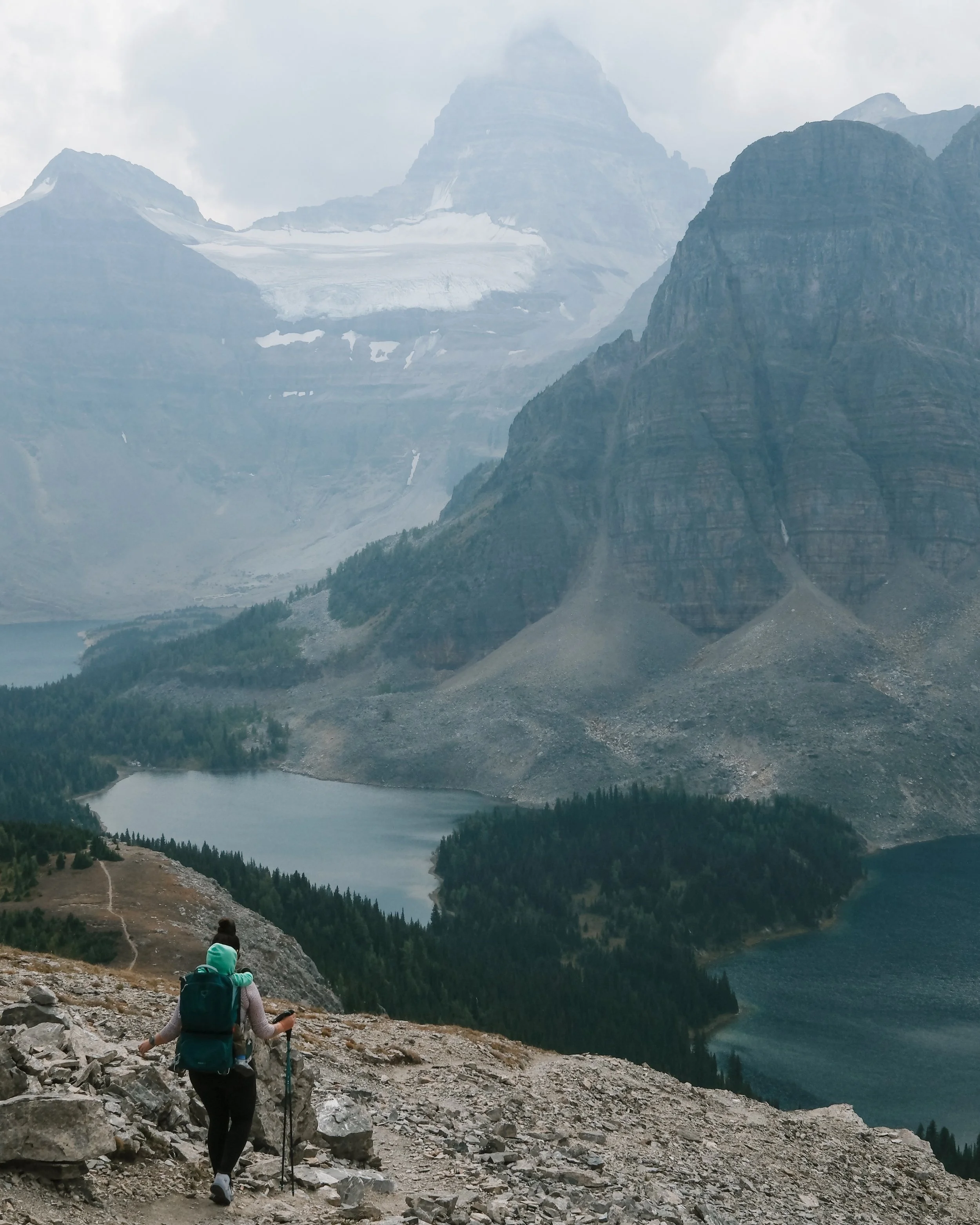 Late summer conditions meant dry trails, brisk mornings, warm afternoons, and the occasional overcast spell with light rain — ideal hiking weather, especially with kids.